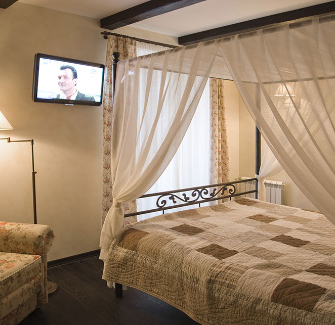 Излюбленным местом отдыха хозяев стал зимний сад, устроенный на подиуме в части кухни. Применение различных кованых элементов и текстильное оформление соответствует выбранному стилевому решению.